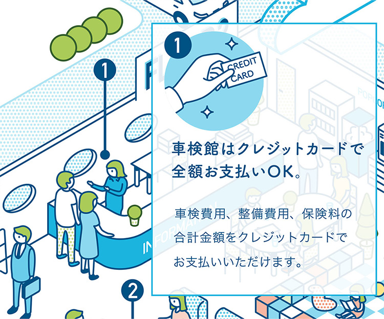 - 車検が完了すれば、ご愛車でそのまま乗ってお帰りいただけます。 お支払いは現金払いのほか、各種クレジットカードも使用可能(全額のお支払いが可能)です。