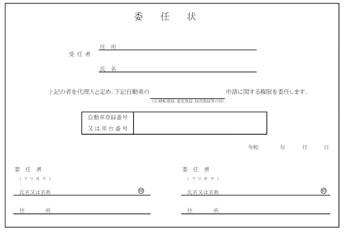 車を譲渡された場合の名義変更は家族や友人、行政書士にも依頼することが可能です。但し、その場合は下記の様な委任状が必要なため注意しましょう。